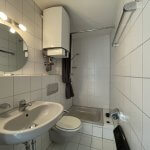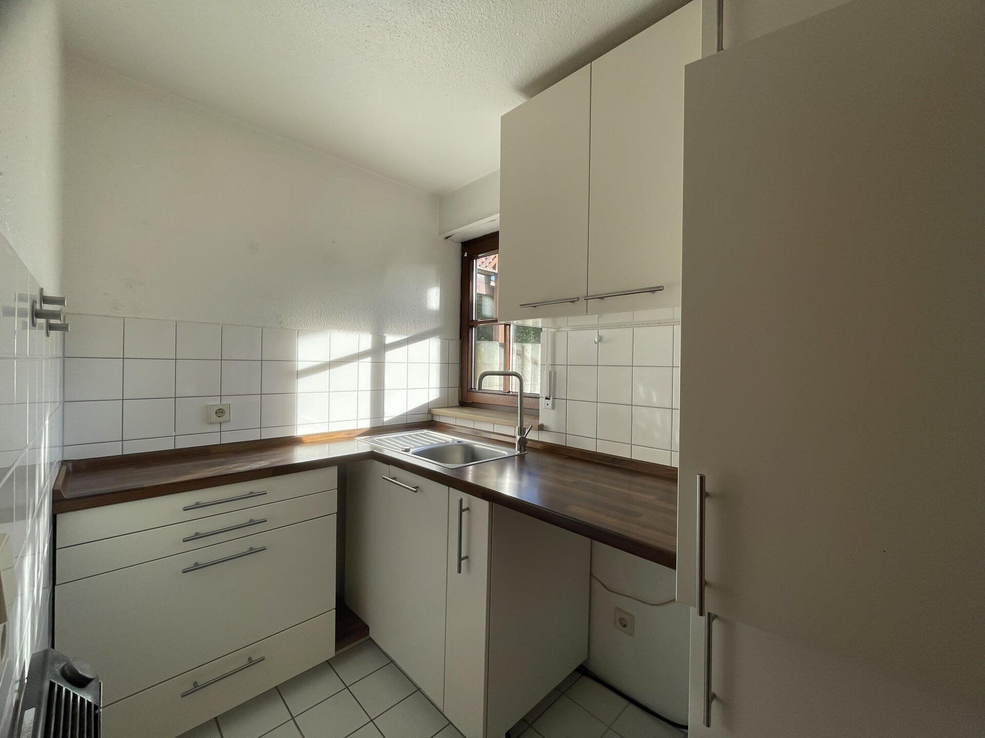 Die separate Küche ist funktional geschnitten und mit einer Einbauküche ausgestattet. Das Badezimmer verfügt über eine Dusche, WC und Waschbecken und ist zeitlos gefliest.
