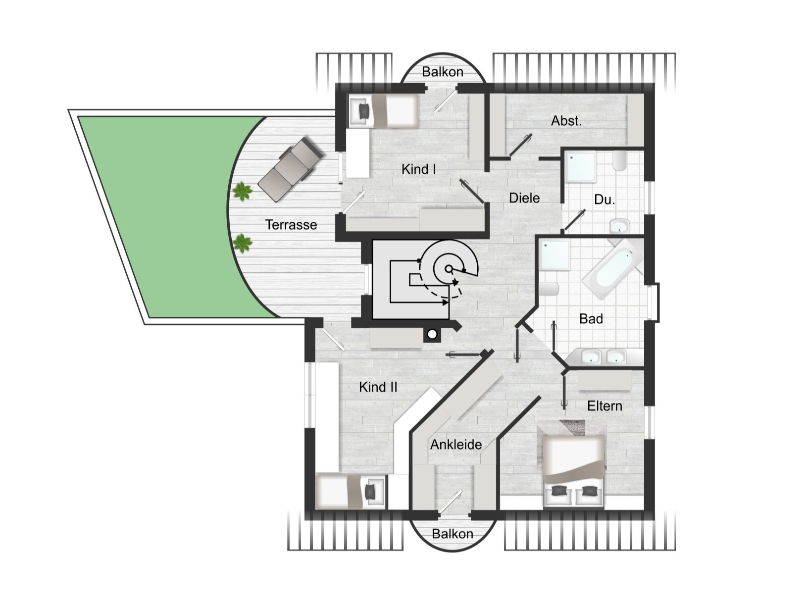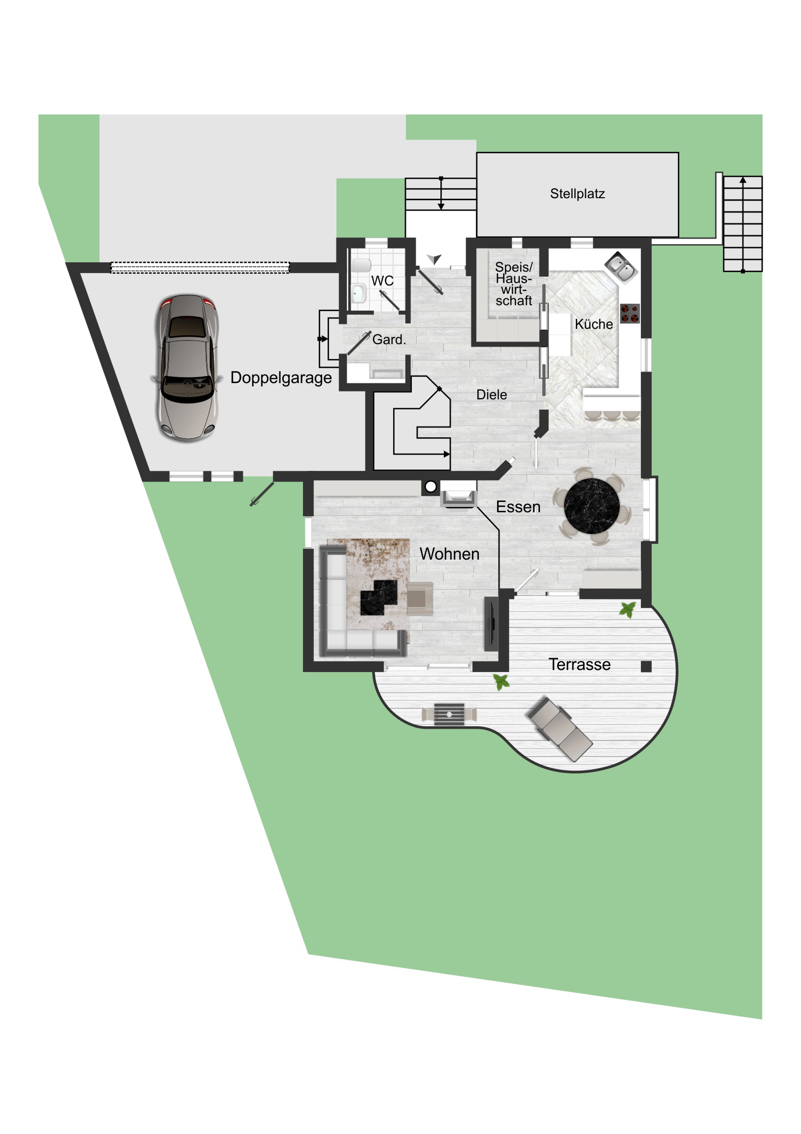 Dieses attraktive, vom Architekten geplante Einfamilienhaus befindet sich in ruhiger, familienfreundlicher Wohnlage von Winnenden und überzeugt mit einer durchdachten Aufteilung, viel Licht und großzügigen Platzverhältnissen. Mit rund 233 m² Wohnfläche bietet die Immobilie ideale Voraussetzungen für Familienleben, Arbeiten von zuhause und individuelle Wohnideen. Die Lage in einer verkehrsberuhigten Anliegerstraße/Sackgasse sorgt für ein entspanntes Wohnumfeld. Im Erdgeschoss bildet der offen gestaltete Wohn-und Essbereich das Herzstück des Hauses: Bodentiefe Fenster bringen viel Tageslicht hinein und schaffen eine angenehme Wohnatmosphäre. Von hier gelangen Sie direkt auf die Terrasse und in den Garten –perfekt für Grillabende, Spielbereich und entspannte Stunden im Freien. Die Küche mit angrenzender Abstellkammer ist praktisch geschnitten; Gäste-WC und Garderobenbereich ergänzen das Raumangebot sinnvoll. Im Obergeschoss erwarten Sie der Elternbereich mit Ankleide und Balkon sowie zwei Kinderzimmer und gleich zwei Badezimmer –ideal für Familien und einen stressfreien Start in den Tag. Ein besonderes Extra ist die großzügige Terrasse über der Doppelgarage, die zusätzlichen Platz zum Sonnen, Entspannen oder für eine Lounge-Ecke bietet. Das Dachgeschoss erweitert das Haus um einen flexibel nutzbaren Bereich, der sich hervorragend als Büro, Homeoffice oder Hobbyraum eignet, ergänzt durch weitere Abstellfläche, sowie einem separaten Abstellraum.