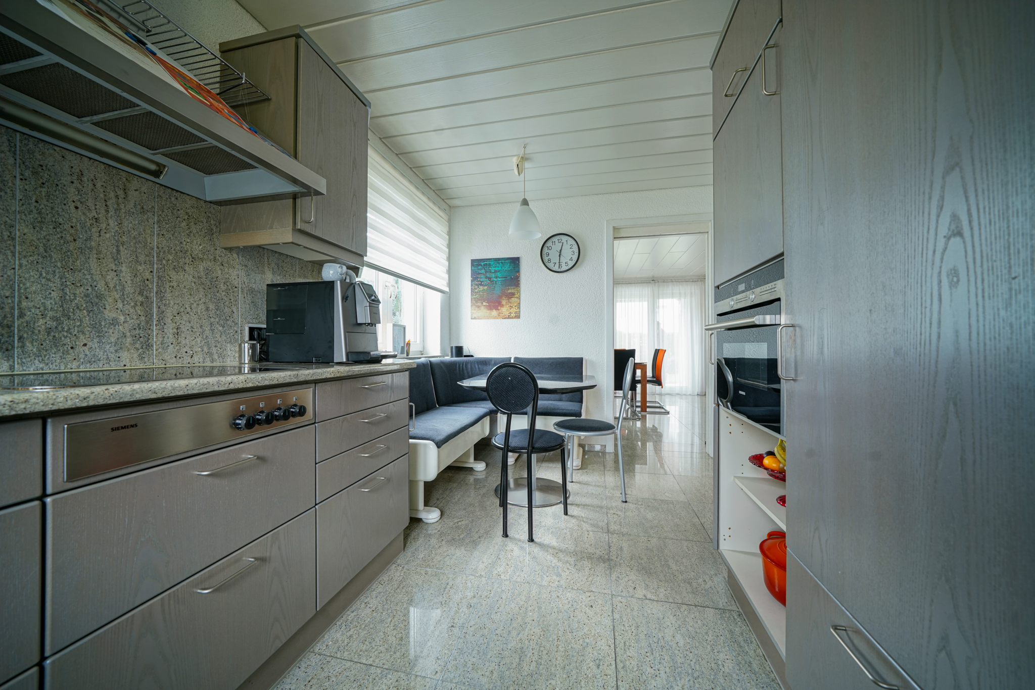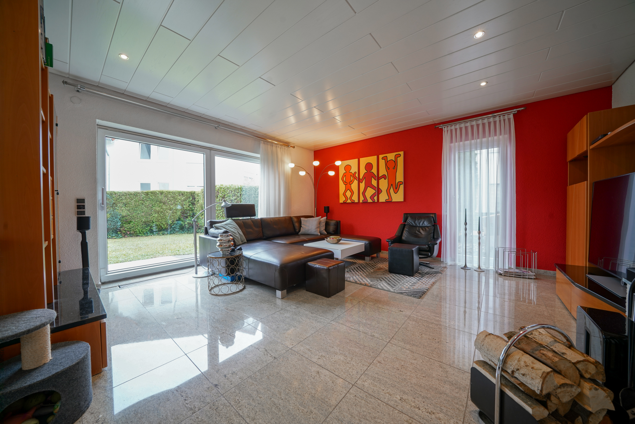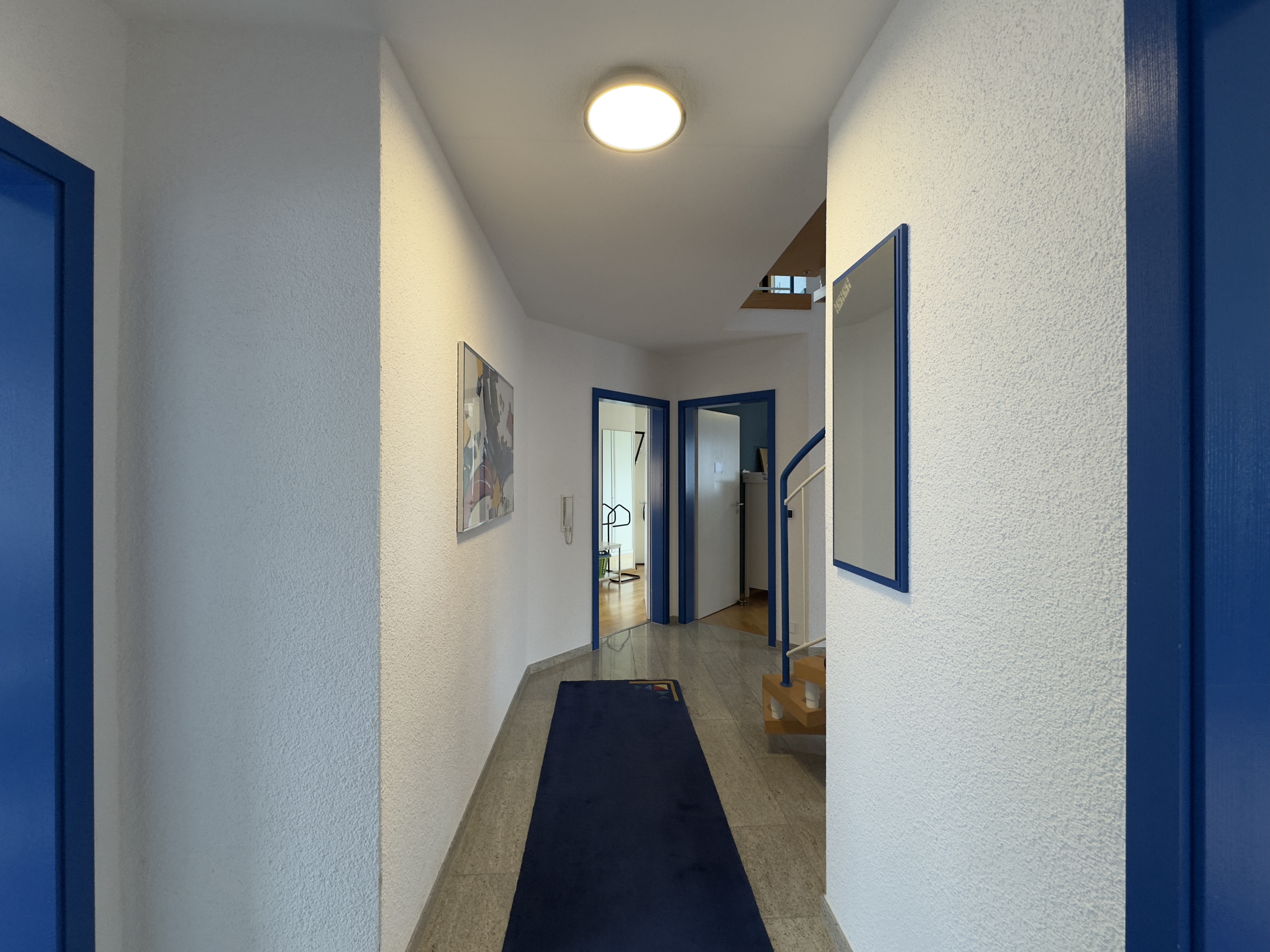 Ein echtes Plus an Flexibilität bietet das Untergeschoss: Das Haus ist hier klar in zwei Bereiche getrennt –eigener Nutz-/Hausbereich sowie eine vollständig separate Einliegerwohnung mit ca. 41 m², eigenem Eingang, eigener Küche und eigenem Schlafzimmer. So bleibt die Privatsphäre im Haupthaus vollständig gewahrt, während sich die Einliegerwohnung ideal für Mehrgenerationenwohnen, Arbeiten oder zur Vermietung eignet. Auch beim Parken überzeugt die Immobilie: Insgesamt stehen fünf Stellplätze zur Verfügung –eine Doppelgarage mit Zugang ins Haus und in den Garten, zwei Stellplätze vor der Garage sowie ein weiterer Stellplatz vor dem separaten Eingang der Einliegerwohnung. Beheizt wird das Haus komfortabel über Fernwärme. Ein Zuhause mit viel Licht, Platz und durchdachter Planung –ein rundes Gesamtpaket für alle, die Wohnen und Zusatznutzen clever verbinden möchten.