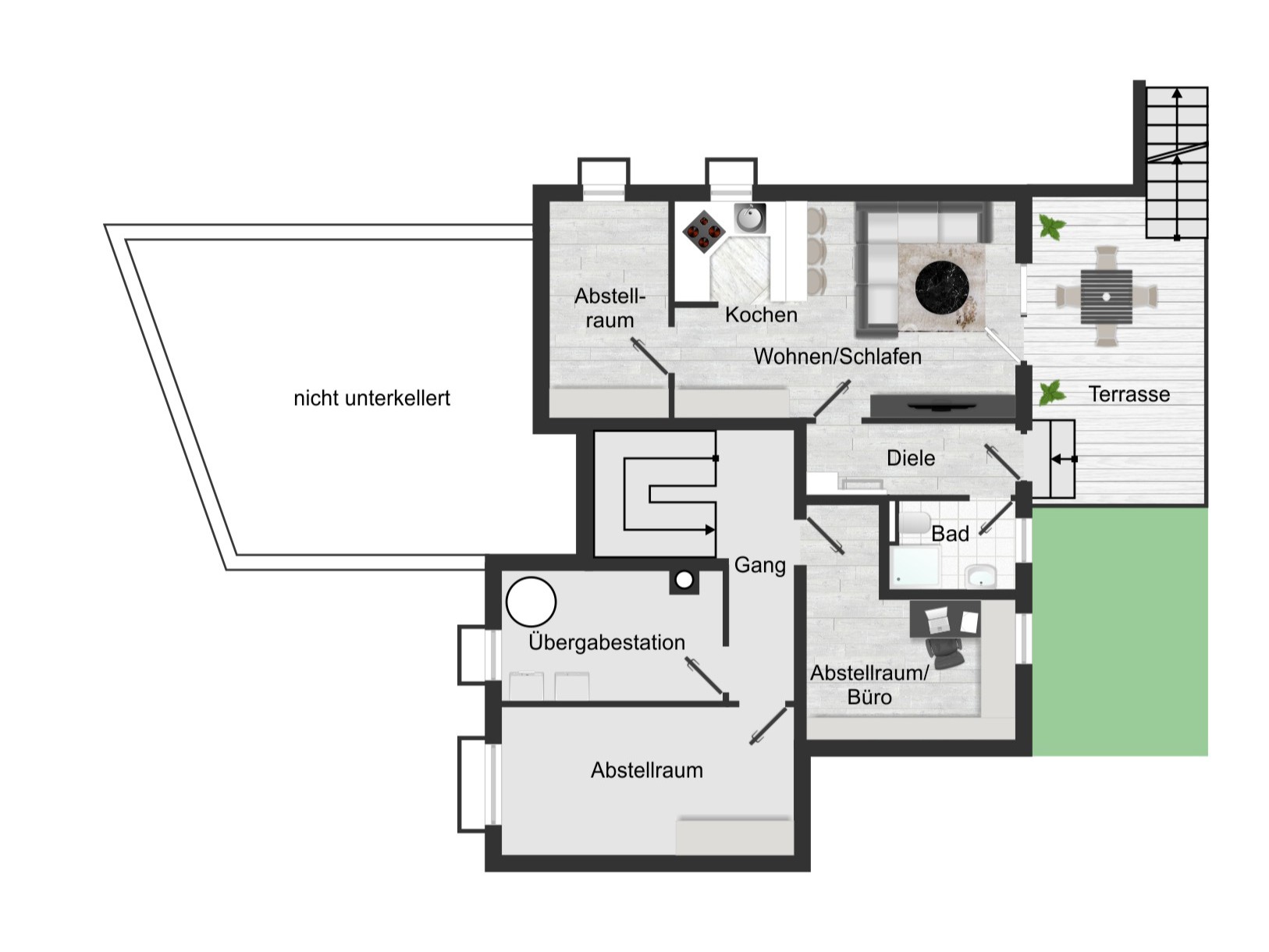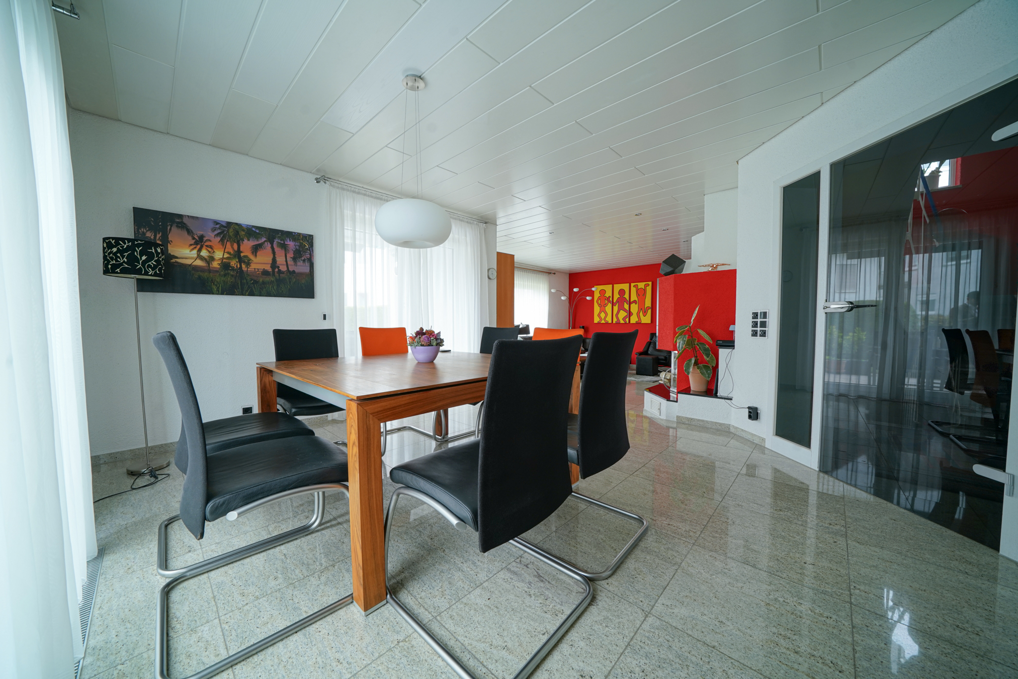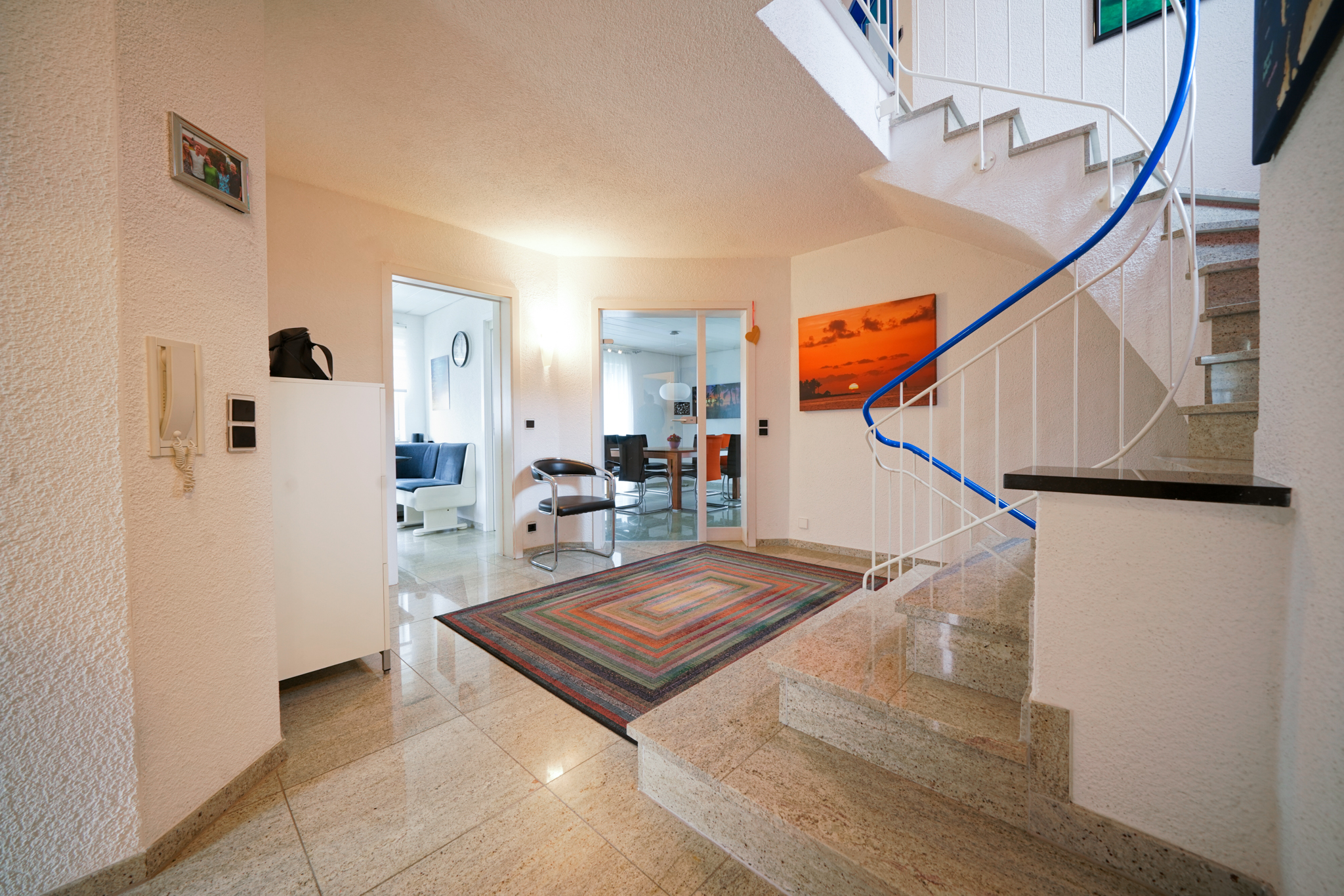 Ein echtes Plus an Flexibilität bietet das Untergeschoss: Das Haus ist hier klar in zwei Bereiche getrennt –eigener Nutz-/Hausbereich sowie eine vollständig separate Einliegerwohnung mit ca. 41 m², eigenem Eingang, eigener Küche und eigenem Schlafzimmer. So bleibt die Privatsphäre im Haupthaus vollständig gewahrt, während sich die Einliegerwohnung ideal für Mehrgenerationenwohnen, Arbeiten oder zur Vermietung eignet. Auch beim Parken überzeugt die Immobilie: Insgesamt stehen fünf Stellplätze zur Verfügung –eine Doppelgarage mit Zugang ins Haus und in den Garten, zwei Stellplätze vor der Garage sowie ein weiterer Stellplatz vor dem separaten Eingang der Einliegerwohnung. Beheizt wird das Haus komfortabel über Fernwärme. Ein Zuhause mit viel Licht, Platz und durchdachter Planung –ein rundes Gesamtpaket für alle, die Wohnen und Zusatznutzen clever verbinden möchten.