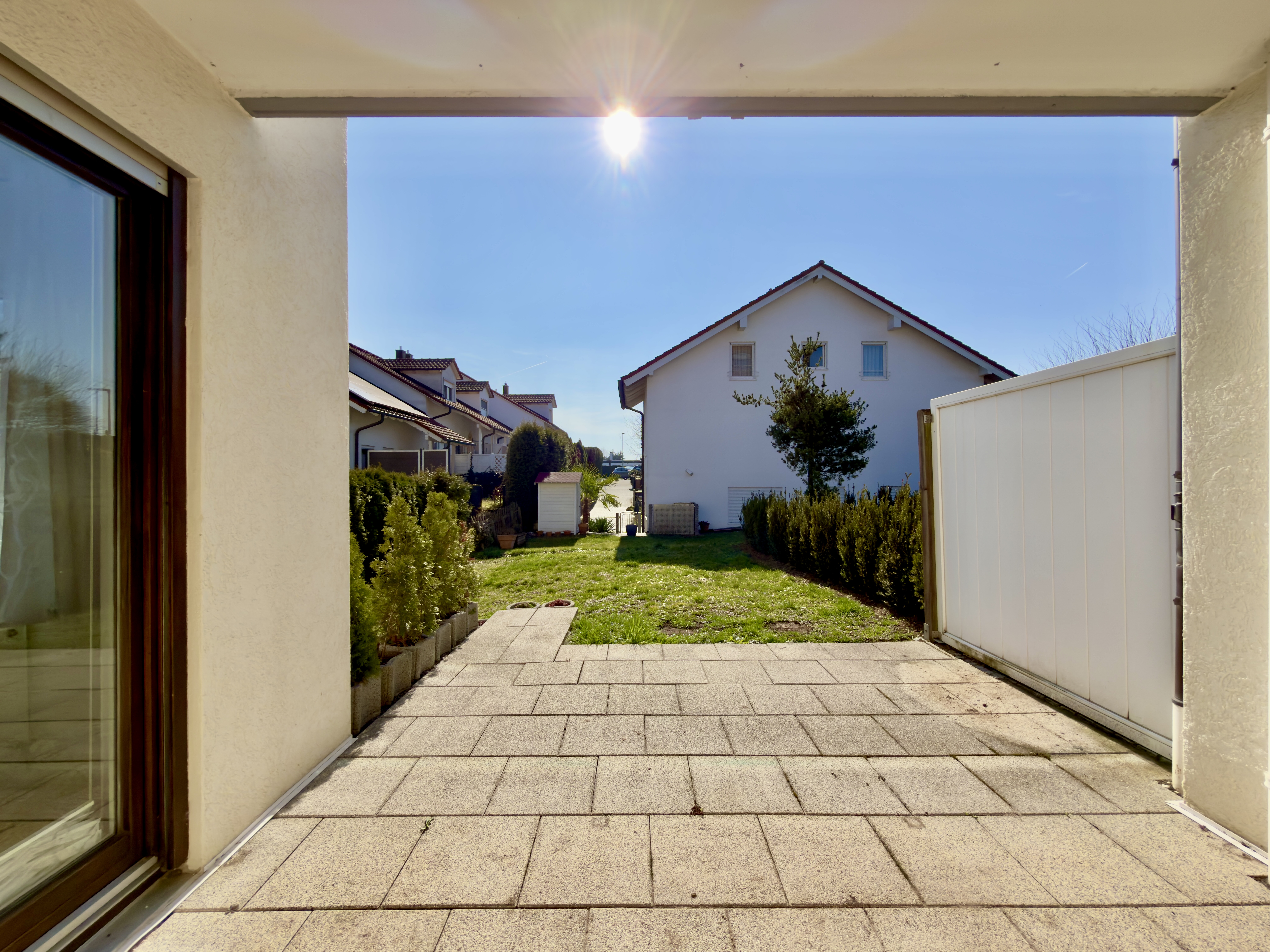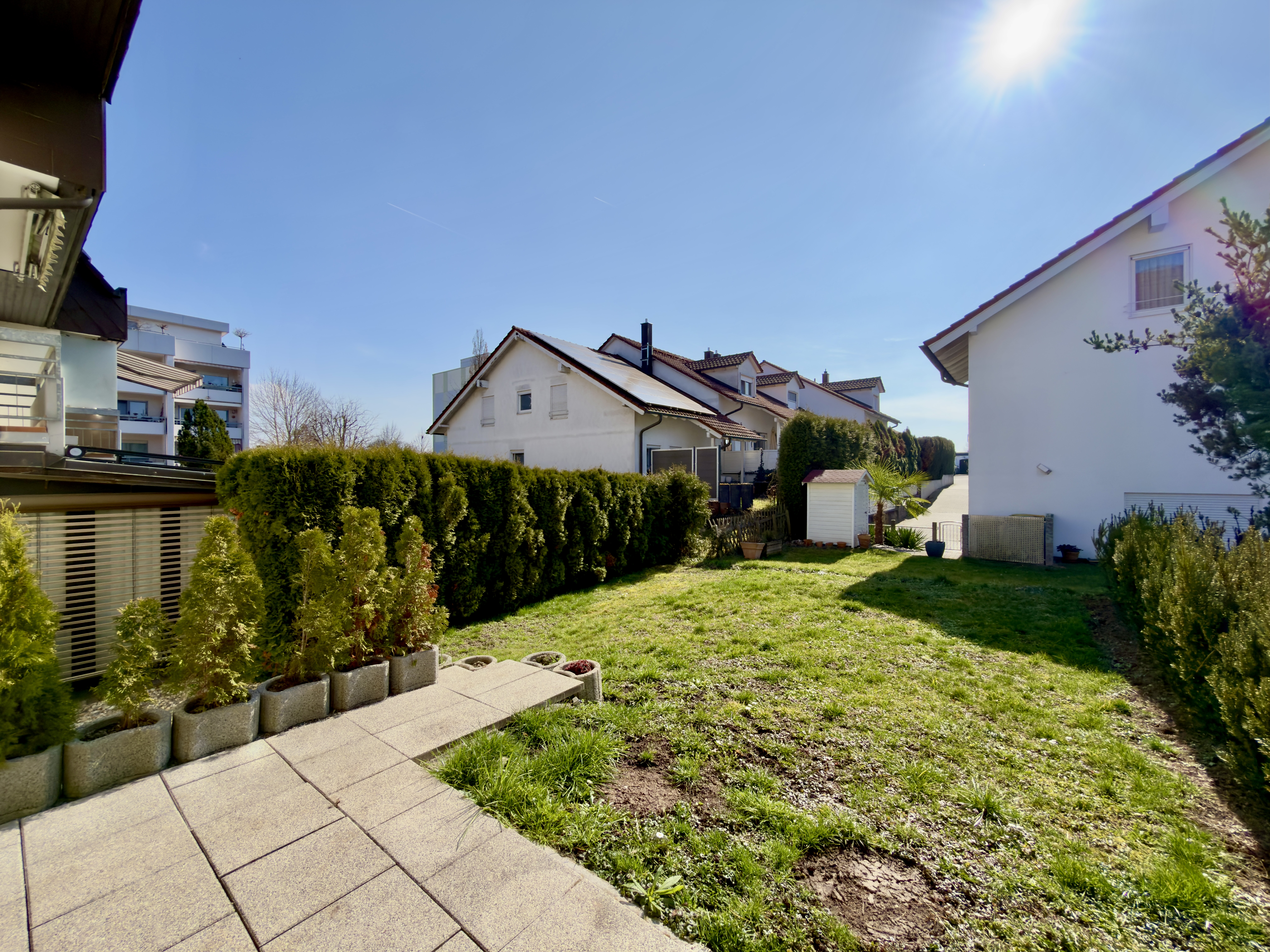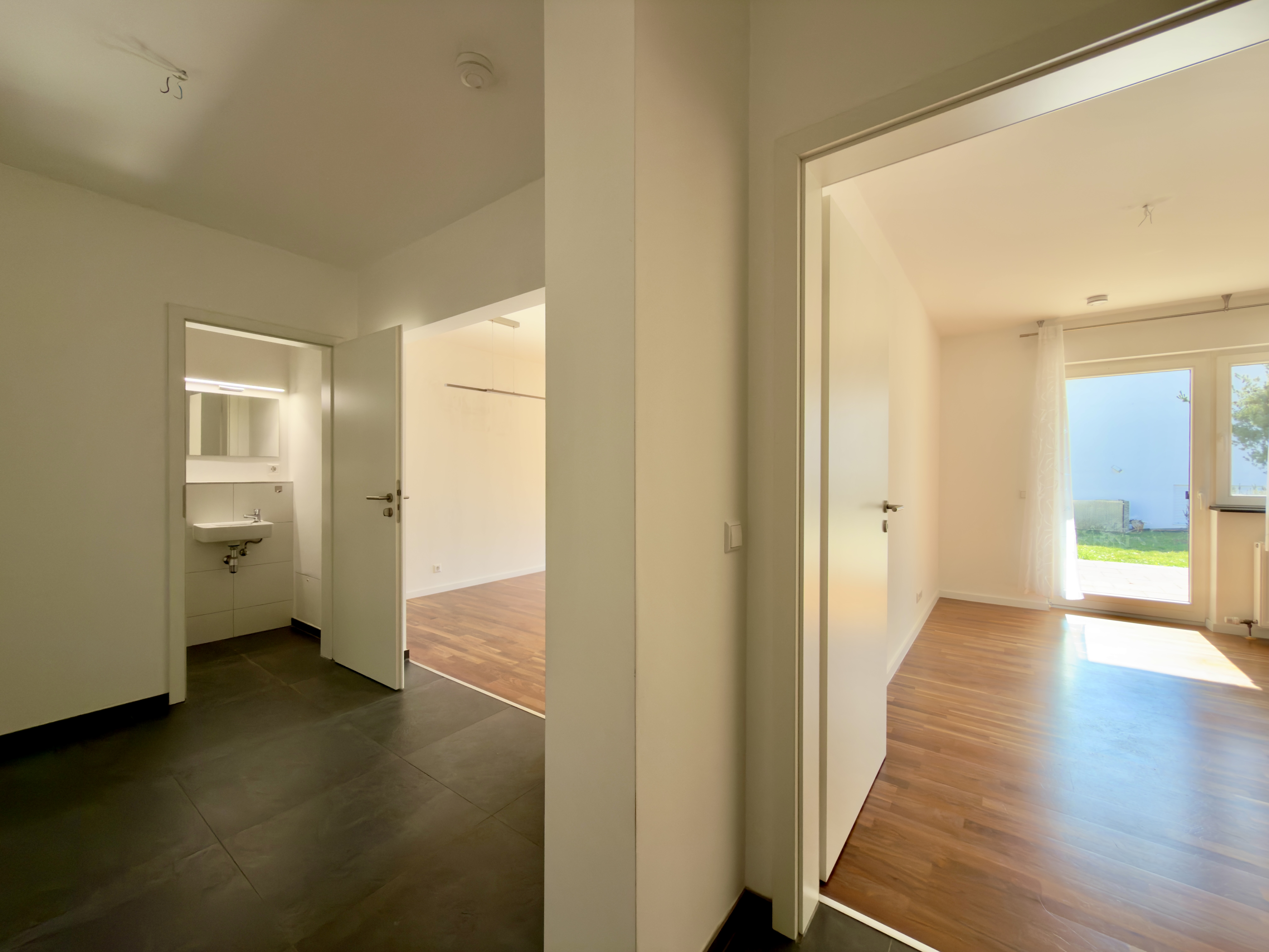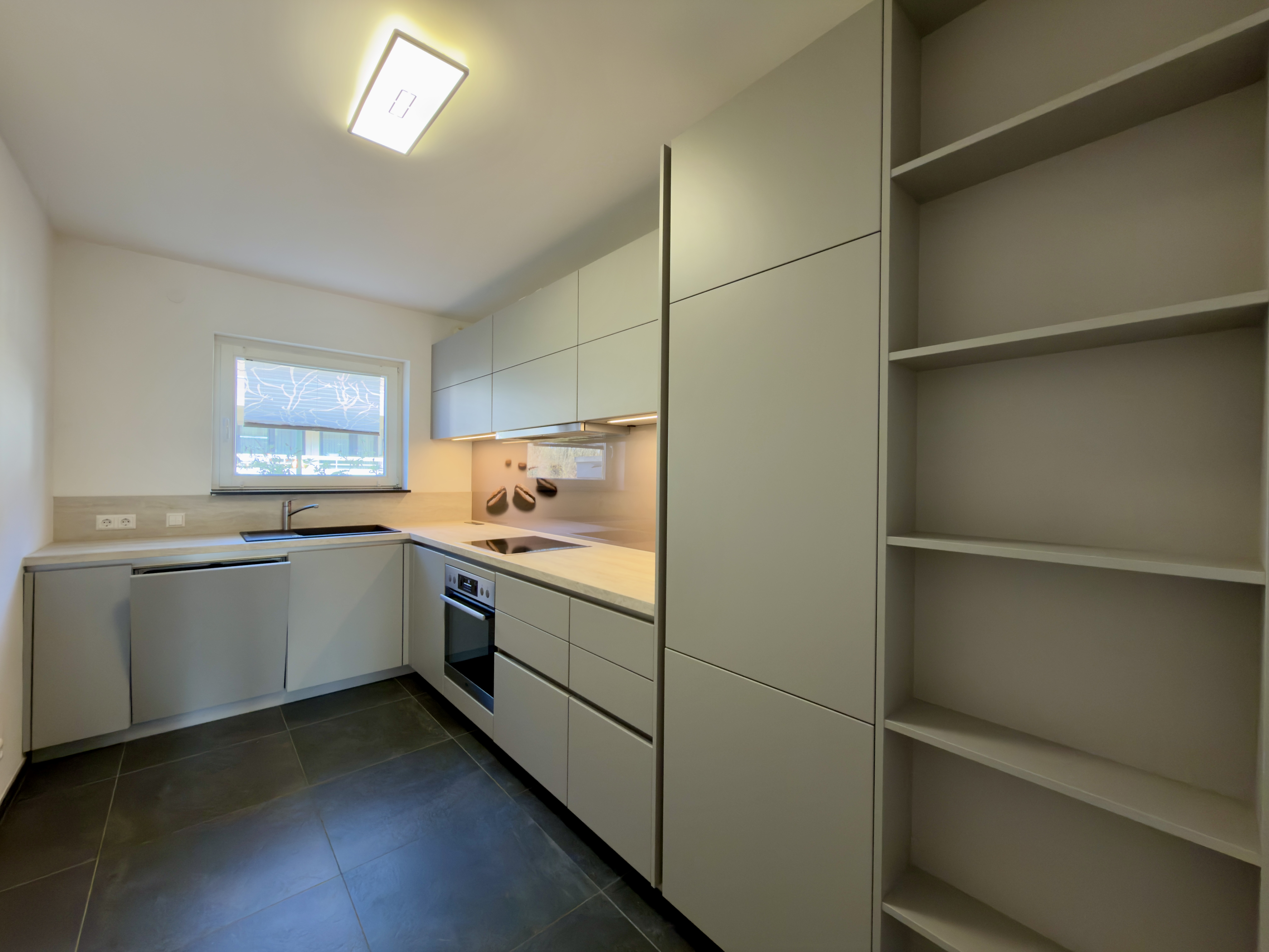 Die separate, neue Einbauküche ist modern ausgestattet und fügt sich harmonisch in das Gesamtbild der Wohnung ein. Das Schlafzimmer bietet ausreichend Platz für individuelle Gestaltungsmöglichkeiten und überzeugt ebenfalls durch eine angenehme Helligkeit, sowie einen Zugang zum Garten und Terrasse. Das Badezimmer ist zeitgemäß gestaltet und wird durch ein separates WC ergänzt – ein praktischer Vorteil im Alltag.