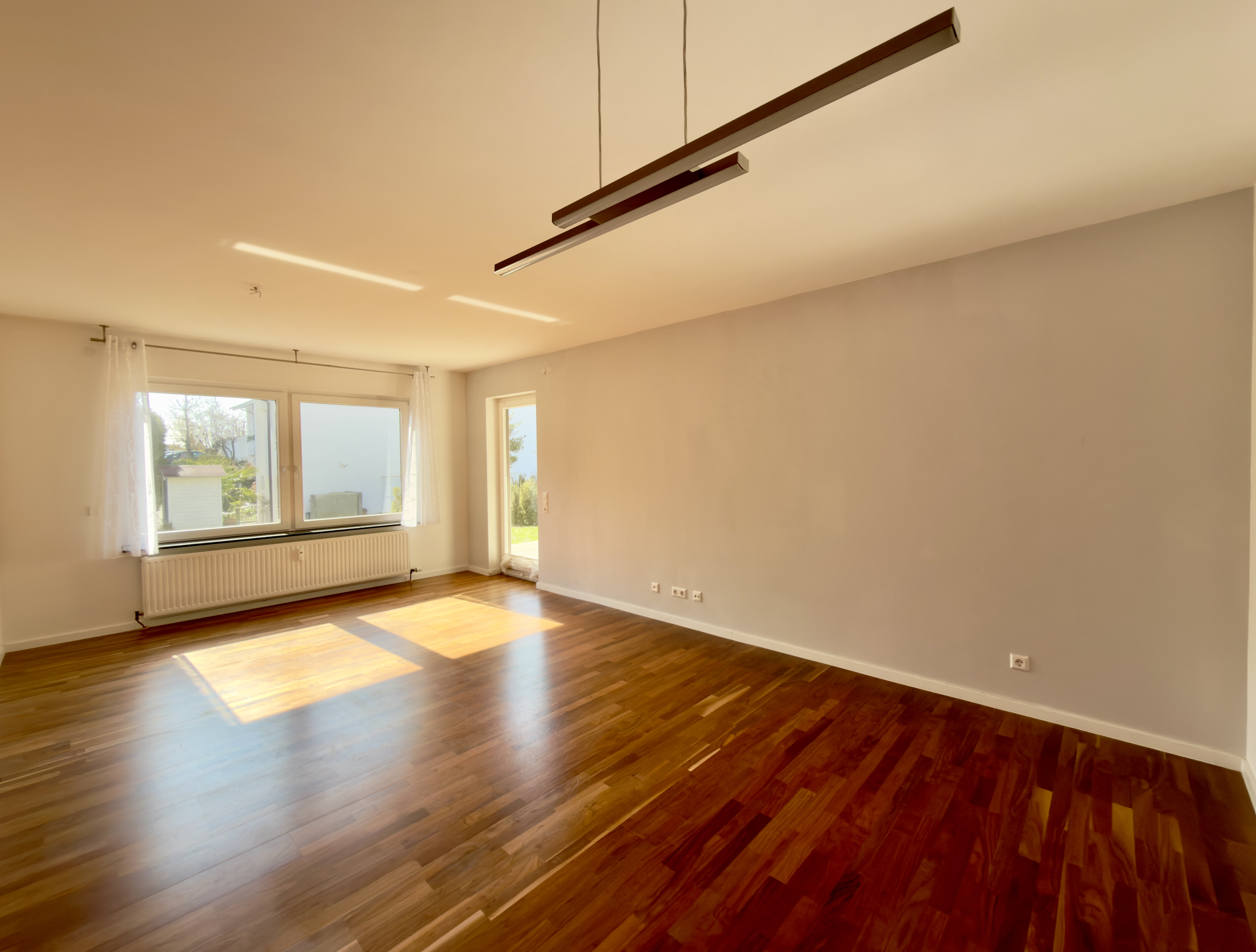 Bereits beim Betreten der Wohnung entsteht ein angenehmes Wohngefühl. Der großzügige Wohn- und Essbereich bildet das Herzstück der Wohnung und besticht durch große Fensterflächen, die für viel Tageslicht sorgen und den direkten Zugang zur Terrasse sowie in den Garten ermöglichen.